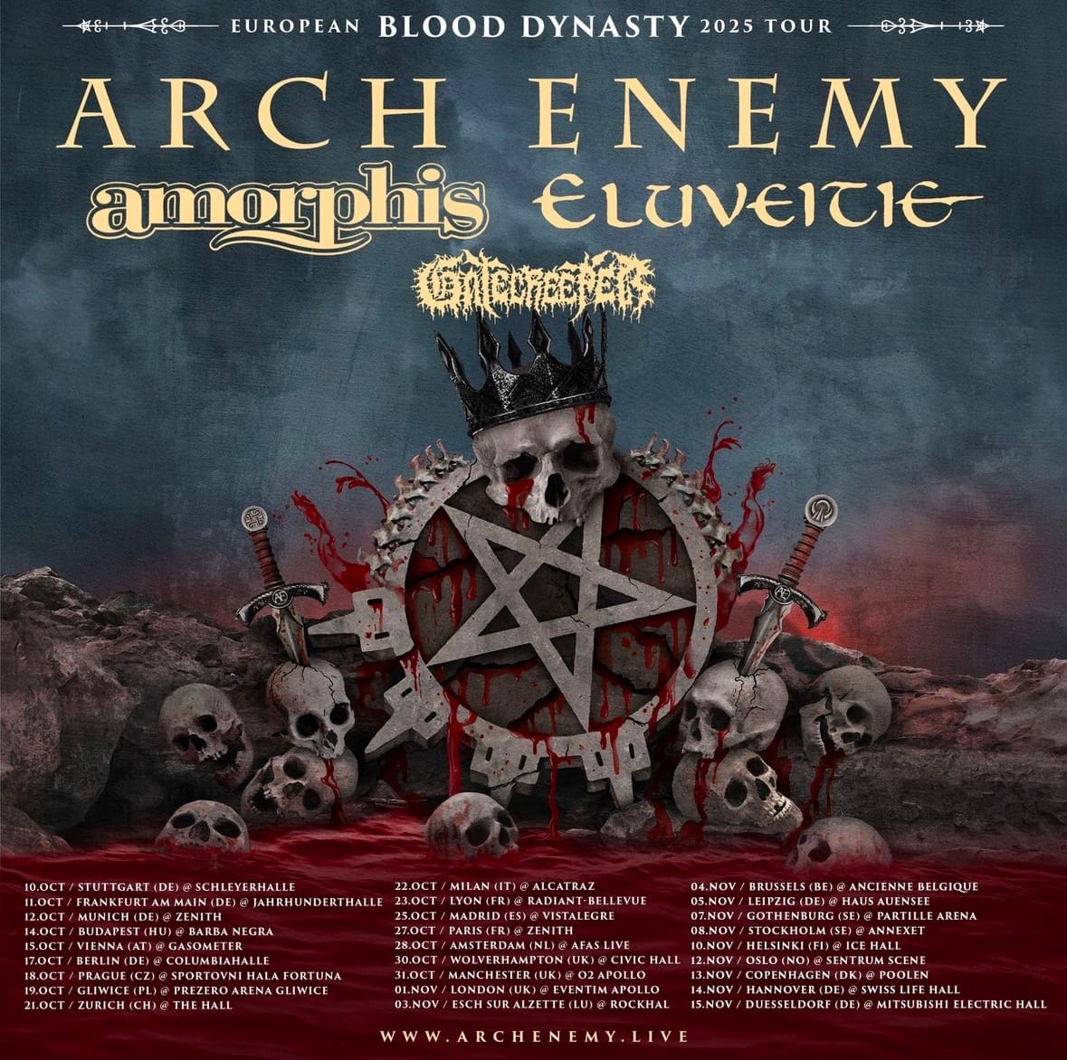 Arch Enemy with special guests Amorphis, Eluveitie and Gatecreeper have announced the European Blood Dynasty 2025 Tour.