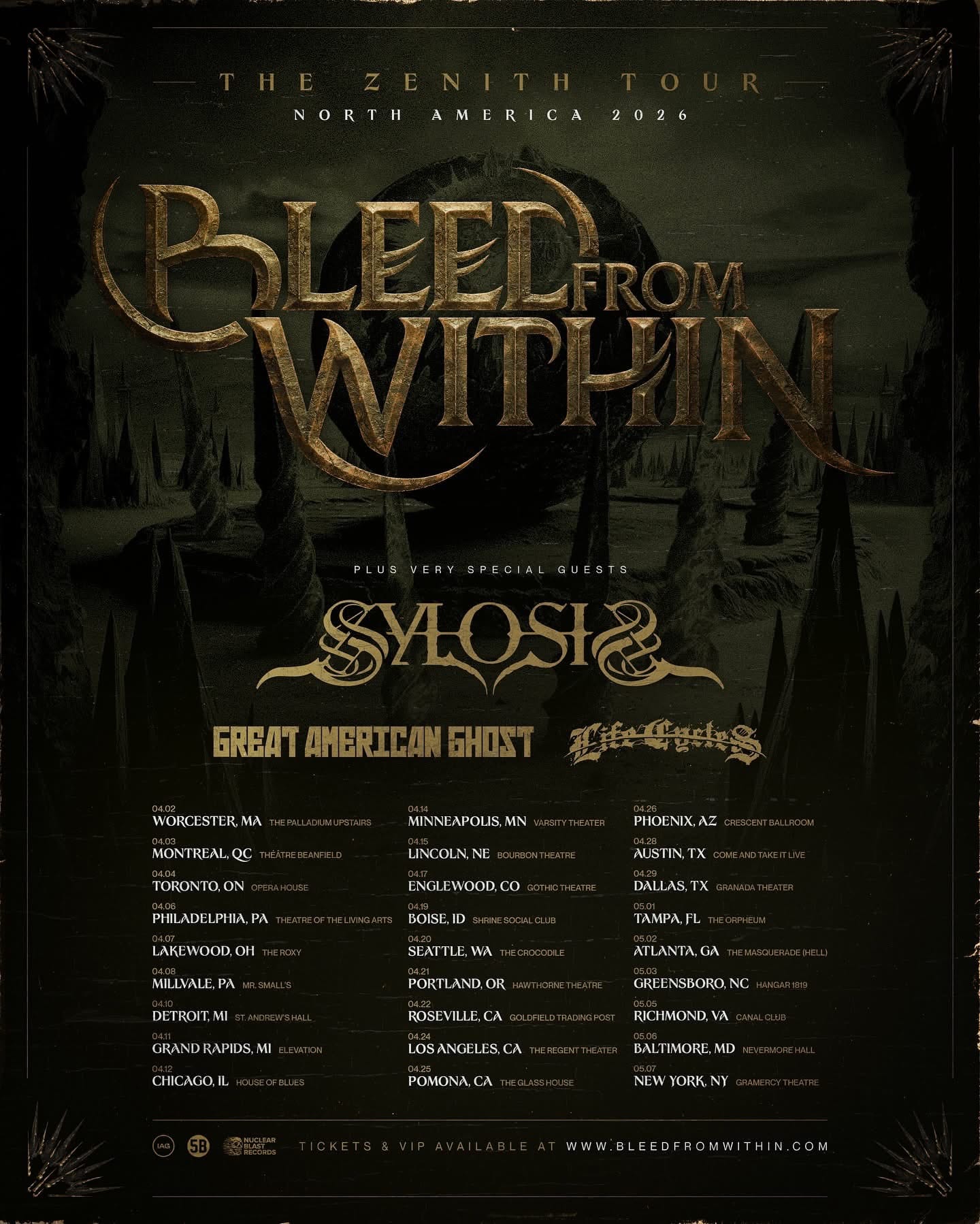 Kicking off in Spring 2026, the tour will see Bleed From Within delivering a career-spanning set featuring tracks from Era, Fracture, Shrine, and their most recent material. Expect the band’s signature mix of crushing riffs, soaring melodies, and relentless energy that has established them as one of modern metal’s most unstoppable forces.