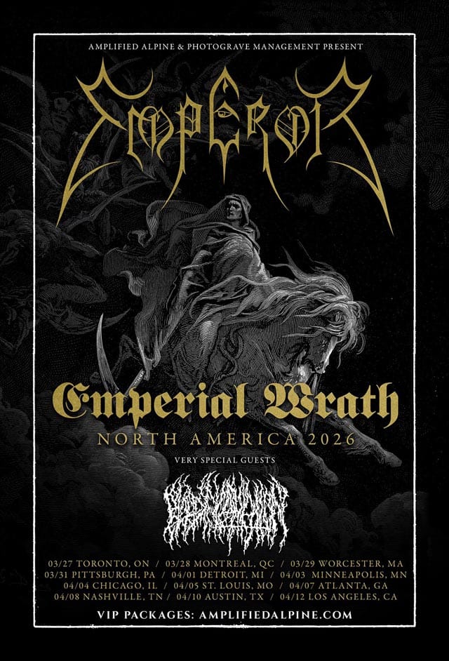 EMPEROR comments: "EMPEROR hordes of North America! We are excited to return to Canada and the U.S. in March/ April 2026 with very special guests BLOOD INCANTATION."