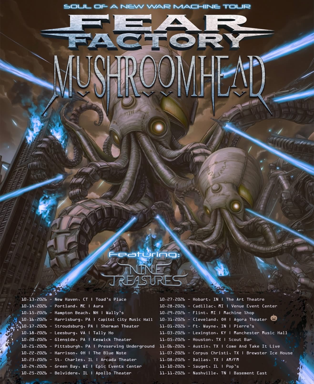 The US co-headlining trek kicks off October 13th in New Haven, Connecticut, and runs through November 11th in Nashville. Nine Treasures will provide support, and the route will make a stop at the Agora Theater in Cleveland for Mushroomhead’s annual Halloween show.