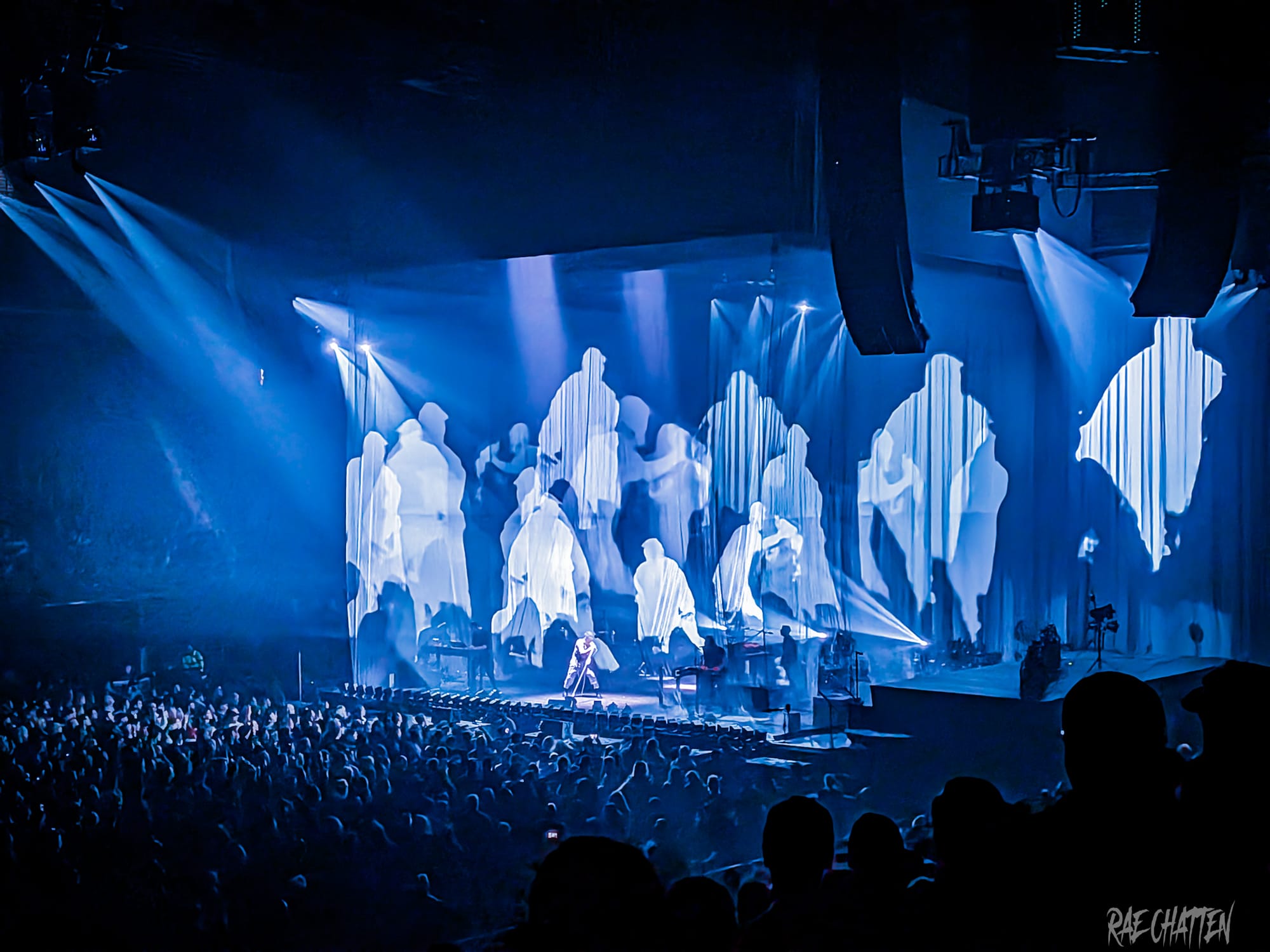 The visuals for this concert were absolutely amazing. For Act 2, they played behind a thin curtain which kept the band visible but also allowed them to have projections playing in front of the band, instead of the usual back screen. It made for a really cool unique effect, with the screen wall also being backlit by bright lights.