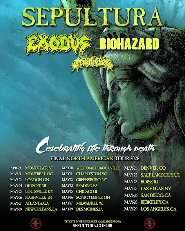 SEPULTURA's "Celebrating Life Through Death" North American tour 2026 with EXODUS, BIOHAZARD, TRIBAL GAZE: