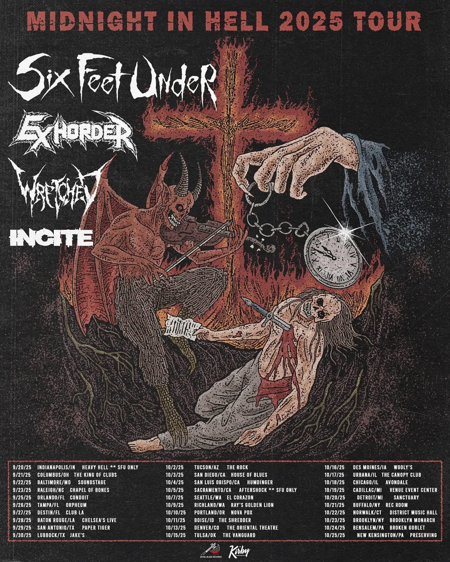 SIX FEET UNDER Announces September/October 2025 Tour With EXHORDER, WRETCHED And INCITE