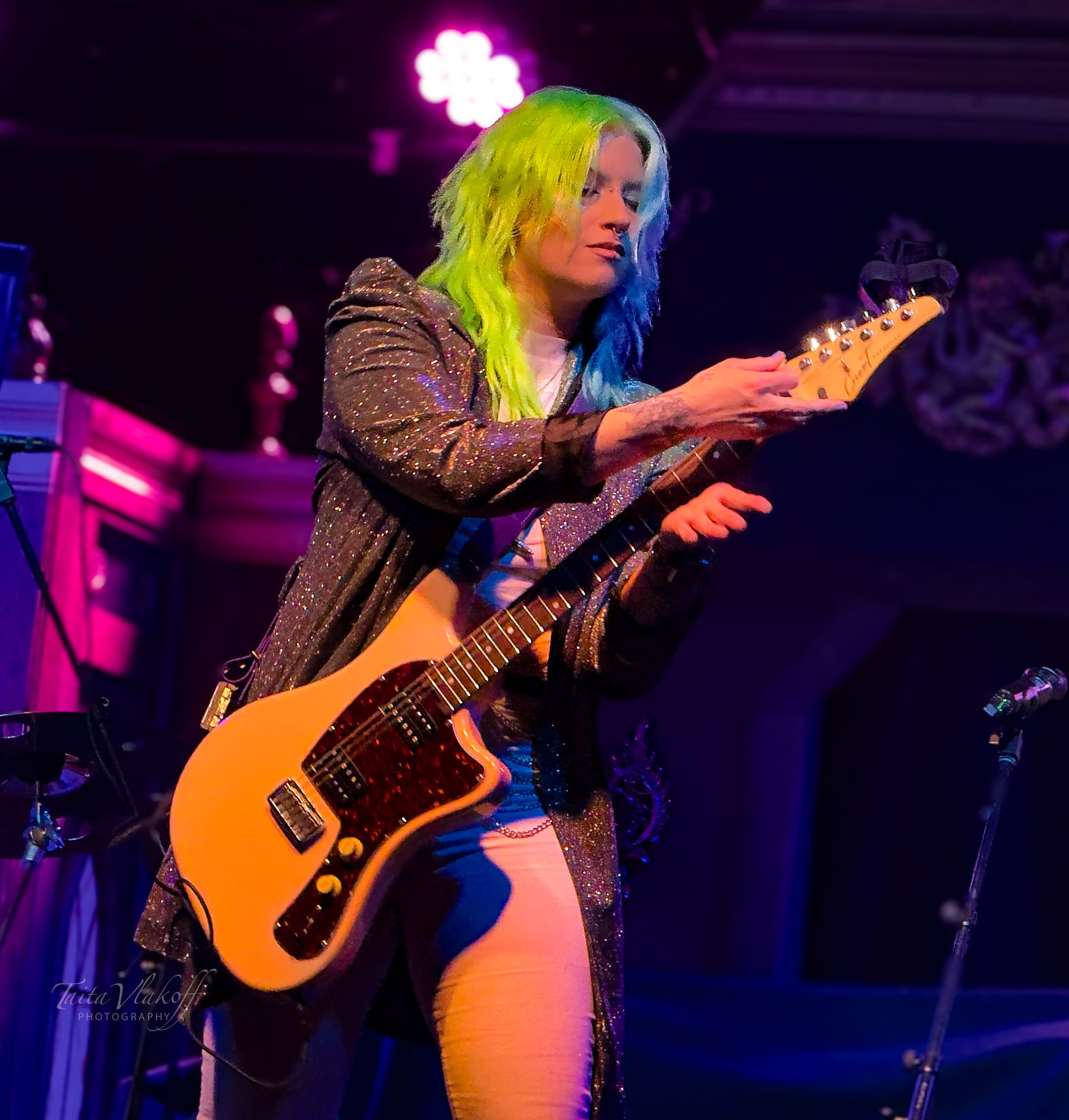 Seraina Telli didn’t walk onto that Toronto stage like an opener—she arrived like someone who’s been through the fire and came out louder, bolder, and unapologetically herself. Guitar slung over her shoulder and eyes full of purpose, she kicked things off with the kind of presence that only comes from experience. And if you know her history as the powerhouse voice behind Burning Witches, it all makes sense—she’s no stranger to commanding a crowd.